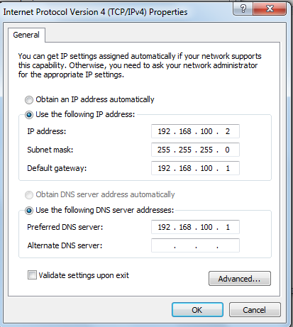 Coba agan lihat gambar setting DNS pada client saya, ip router saya asumsikan 192.168.100.1, maka dns kita set ke ip router seperti berikut: